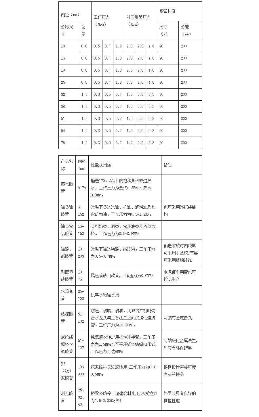 二、特點(diǎn):膠管具有外徑公差小、耐油、耐熱等性能優(yōu)良、輕便、管體柔軟經(jīng)久耐用等優(yōu)點(diǎn);膠管的小爆破壓力為工作壓力的四倍。